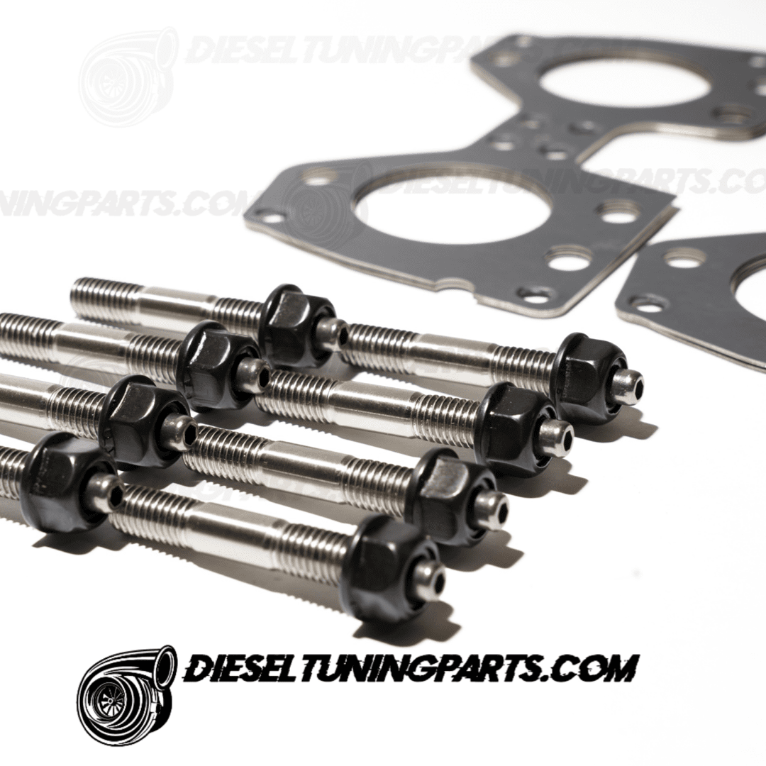 Häufiges Problem, gerade bei stark Turbo-aufgeladenen Motoren ist die Abdichtung des Abgaskrümmers gegen den Zylinderkopf. Bei hohen Temperaturen und entsprechend hohem Druck im Krümmer neigen die serienmäßig verbauten Bolzen dazu sich zu längen. Ebenso häufig verliert die Schraubenverbindung durch sich lösende Muttern die Vorspannkraft, was in einem Abgasleck und damit verbunden in niedrigem Ladedruck resultiert.